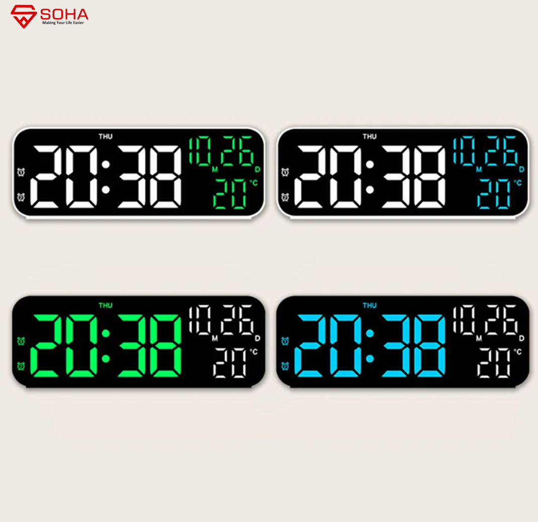 Jam Digital LED Angka LED Besar Tampilan Jelas dan 2 Warna LED Kombinasi Kesan Jadi Mewah
