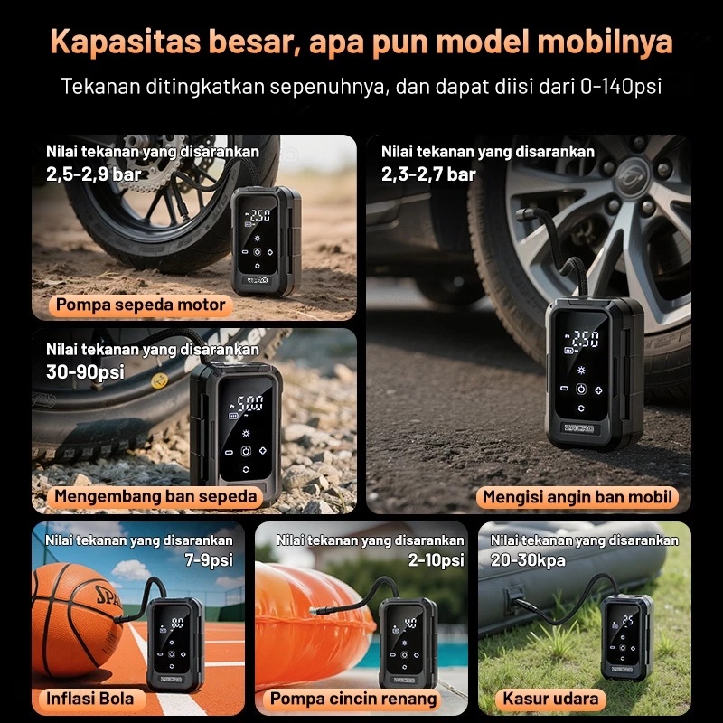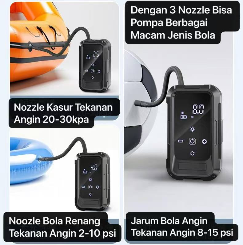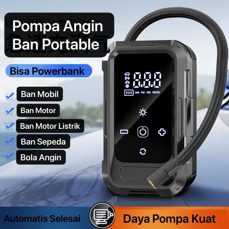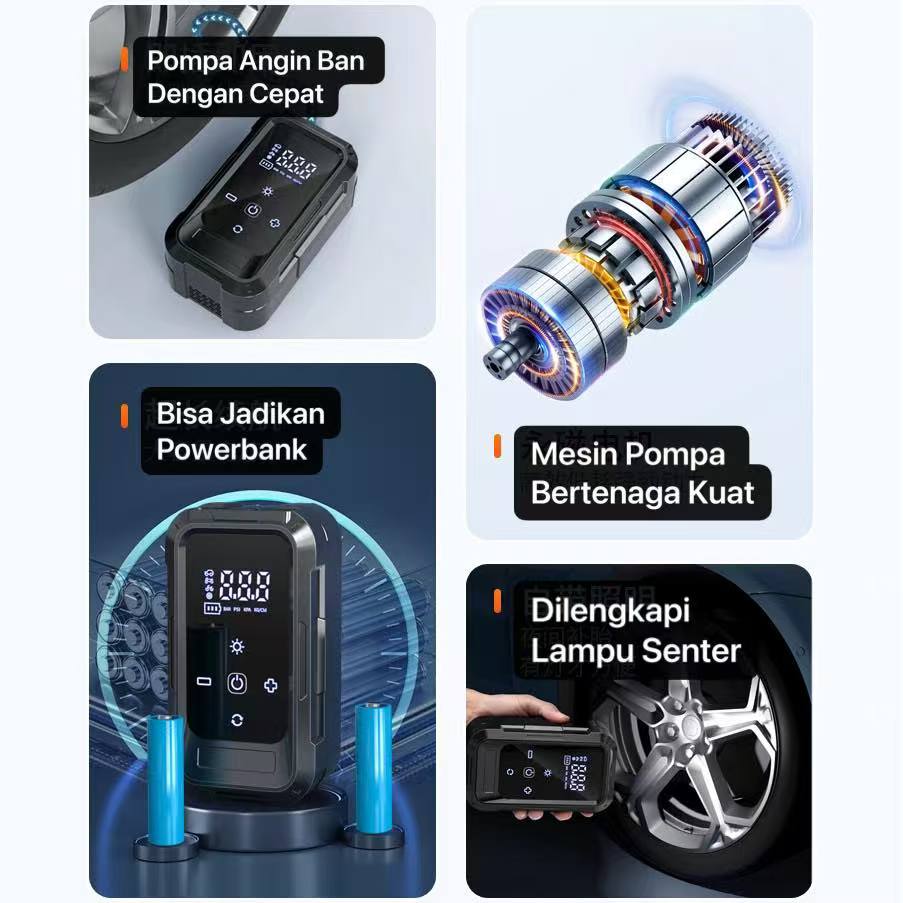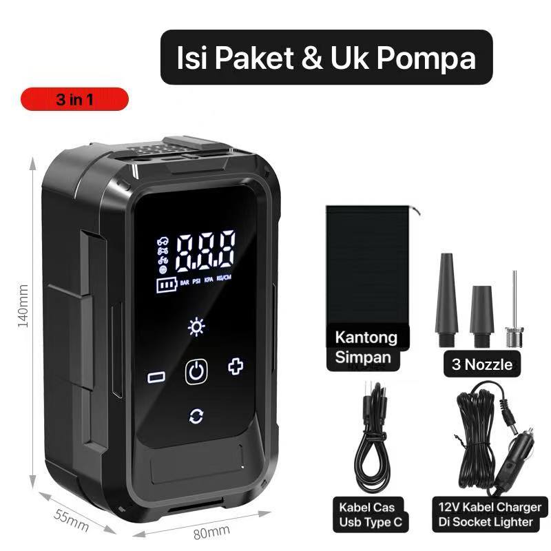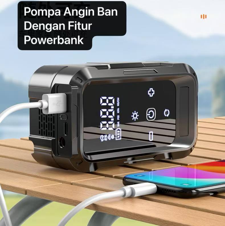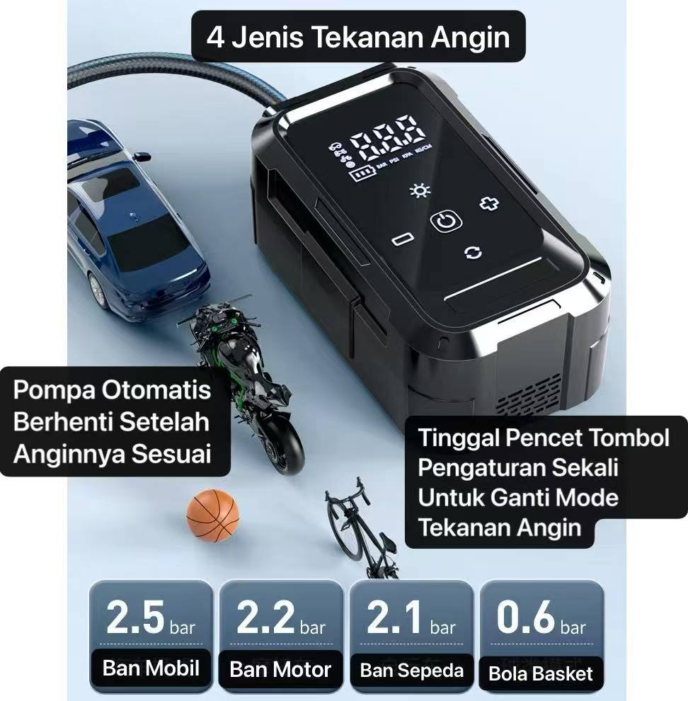 Pompa Angin Portable Multifungsi Bisa Isi Angin Ban Motor / Mobil / Sepeda / Bola dan Bahkan Ada Fitur Powerbank