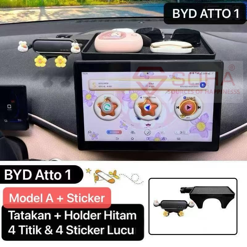 Tatakan Mobil Dengan Car Holder Pasang Di Belakang Head Unit Layar Mobil BYD Atto 1