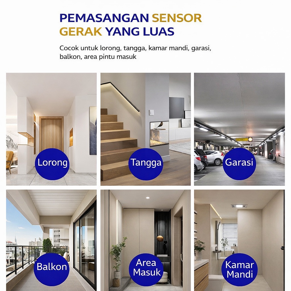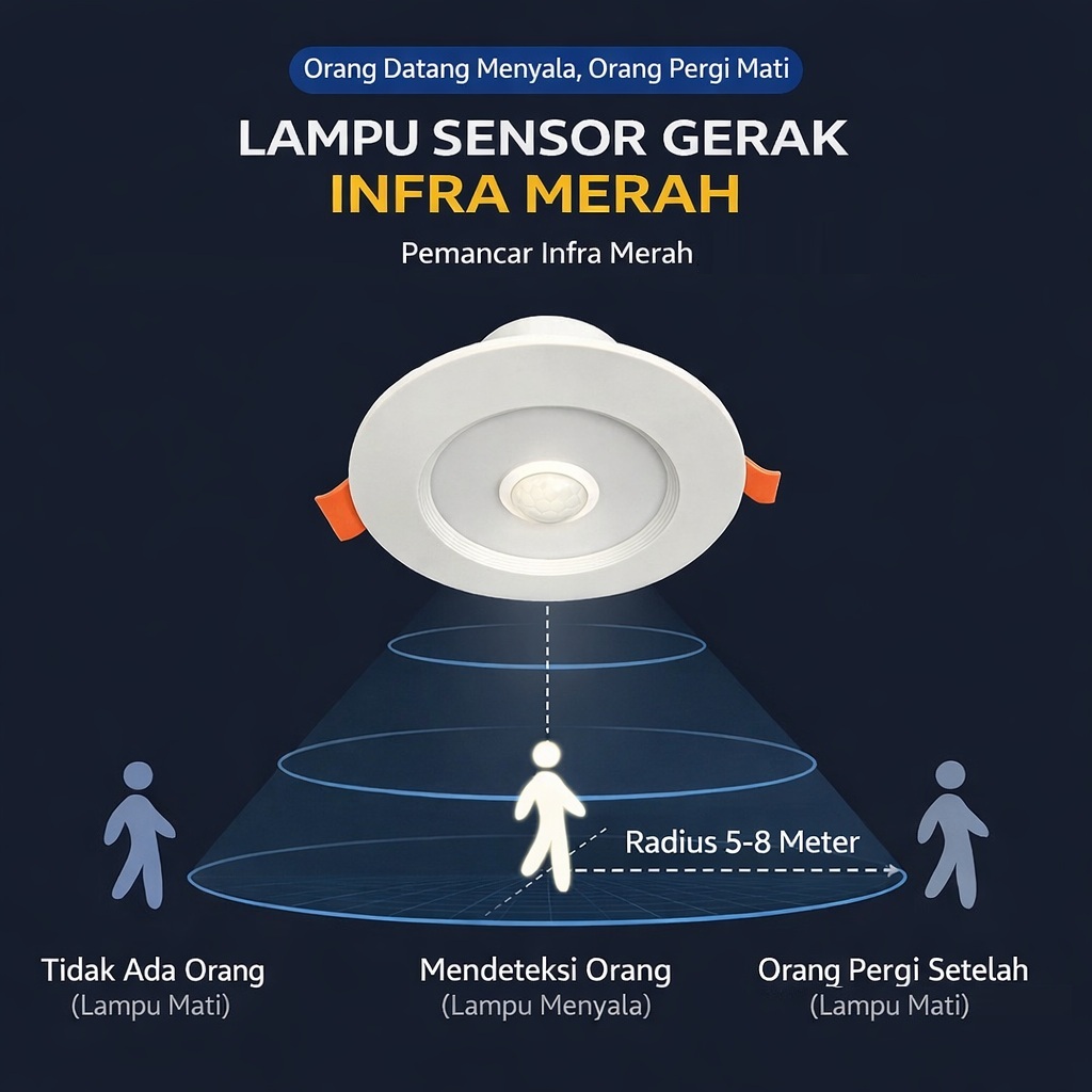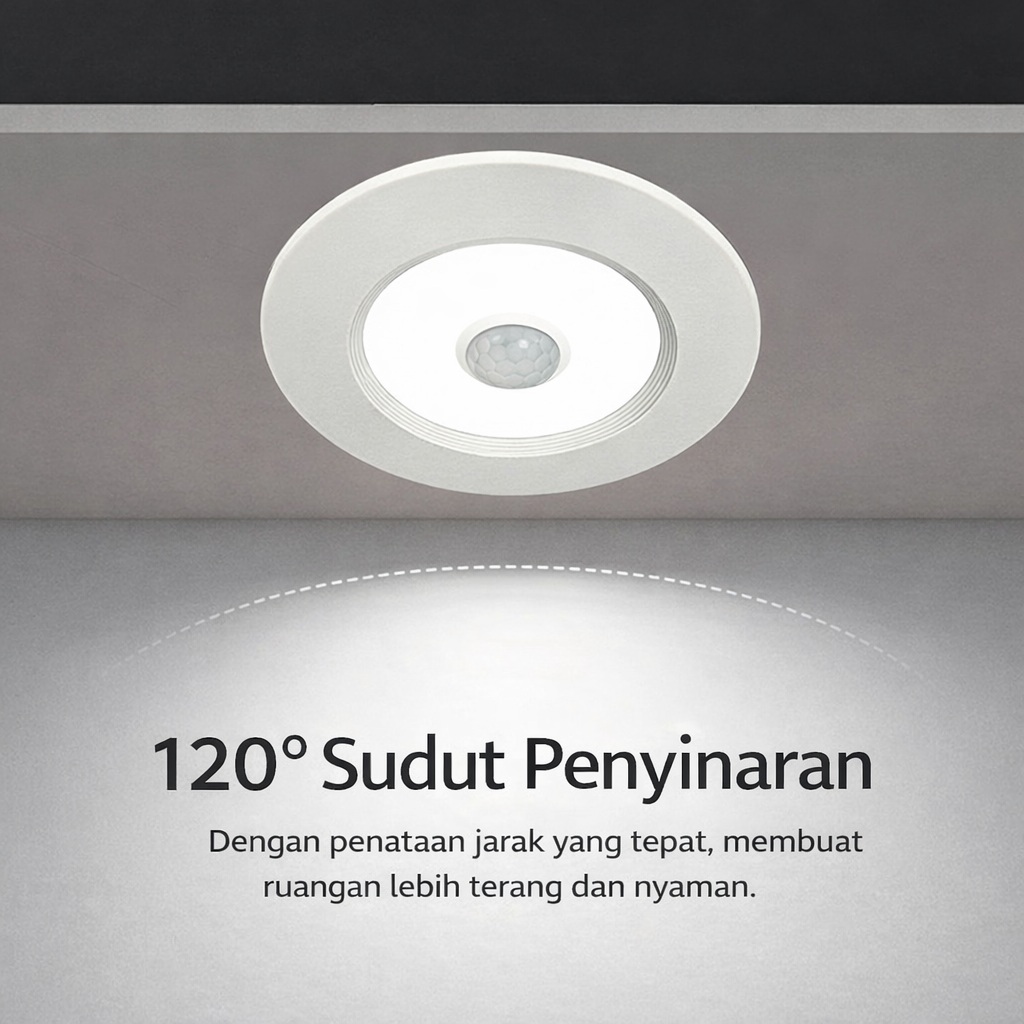 + Sensor Gerak Otomatis (PIR) – Lampu menyala & mati tanpa perlu saklar