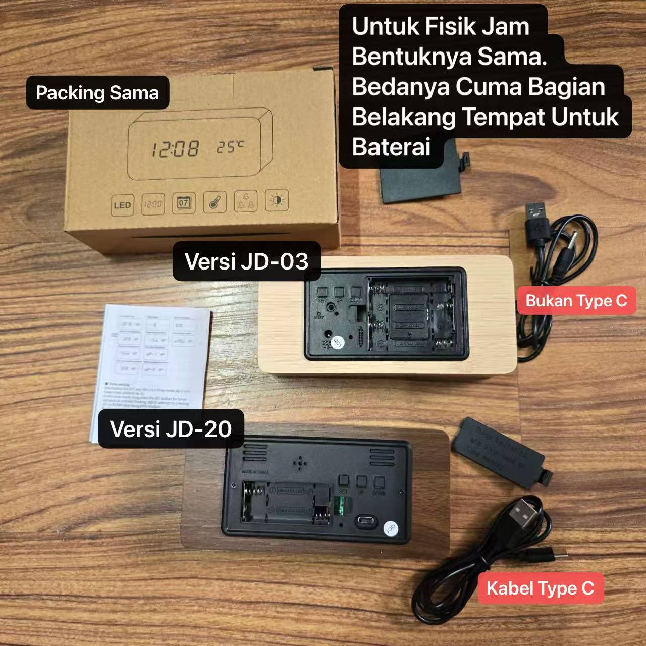 JD-20 Coklat Tua Jam Meja Motif Kayu Digital Led Weker / Desain Wood Alarm LED Clock Waker Suhu temperature date Tanggal Jam Kerja