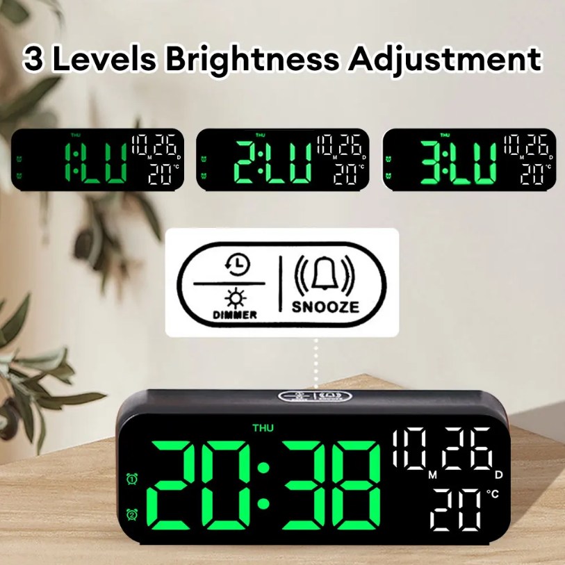 JD-2802 Body Hitam LED Hijau Putih Jam Meja Digital LED Besar Tampil Jam Tanggal Hari Suhu 2 Alarm 12/24 Jam Alarm Snooze Countdown Hitung Mundur