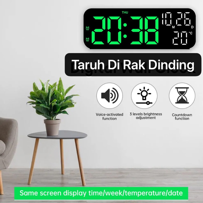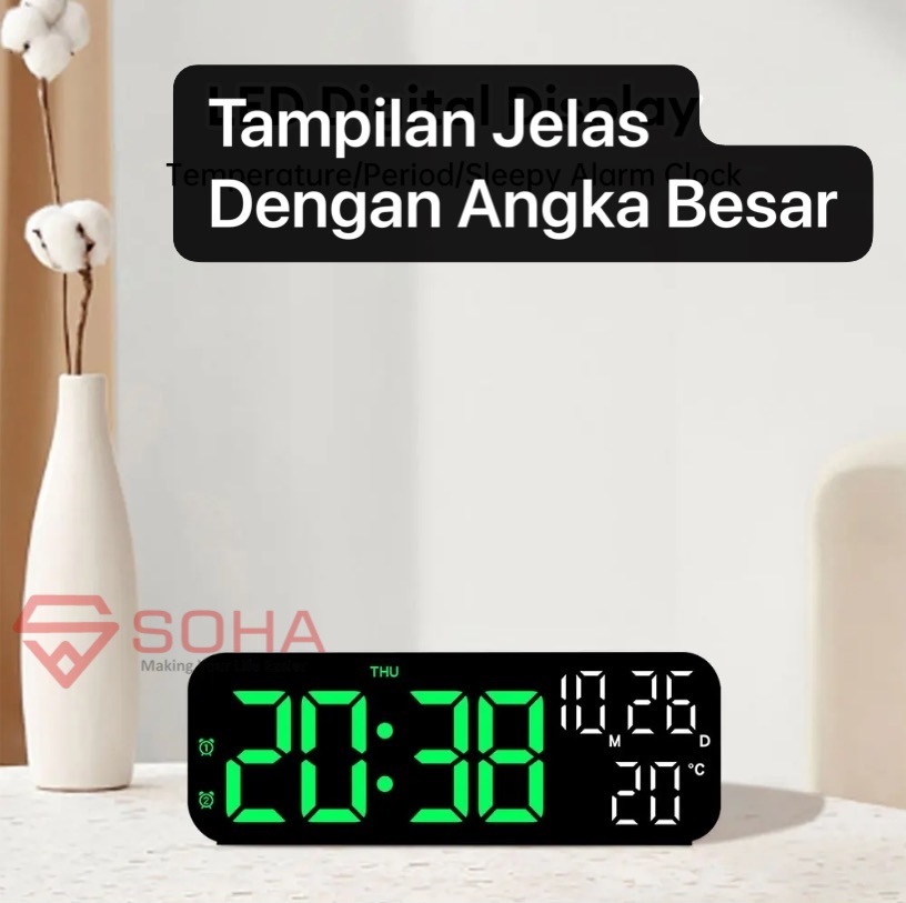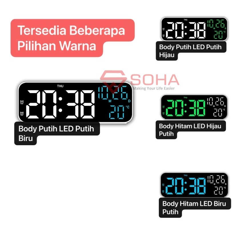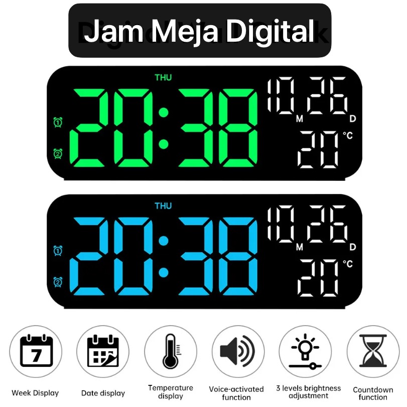 Jam Digital LED Angka LED Besar Tampilan Jelas dan 2 Warna LED Kombinasi Kesan Jadi Mewah