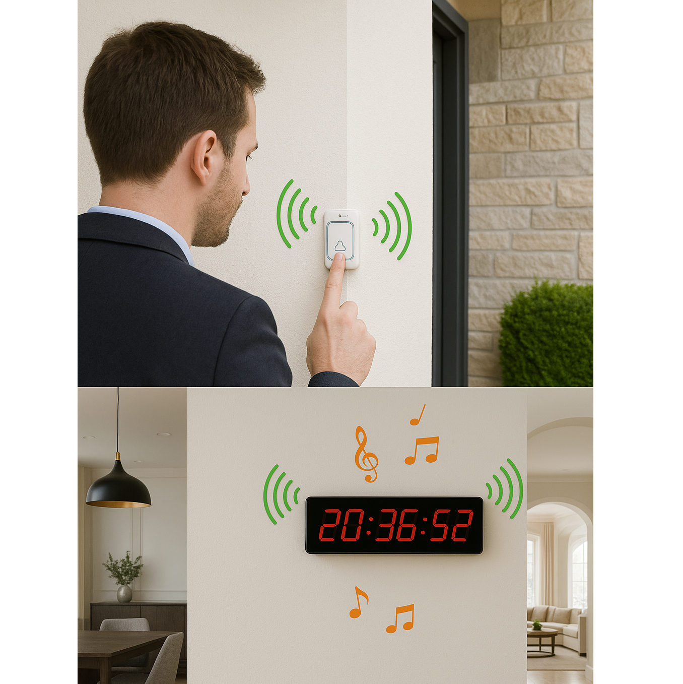 + Model Jam Dengan Fitur Bel RumahJika Kak Beli Model Jam Dengan Fitur Bel Rumah Maka Dapat Remote Bel Dan Jam Digital Yang Sudah Dilengkapi Speaker Bel, Dimana Kalau Remotenya di Pencet Maka Suara Bel nya Akan Keluar Dari Jam nya ( Fitur Canggih )