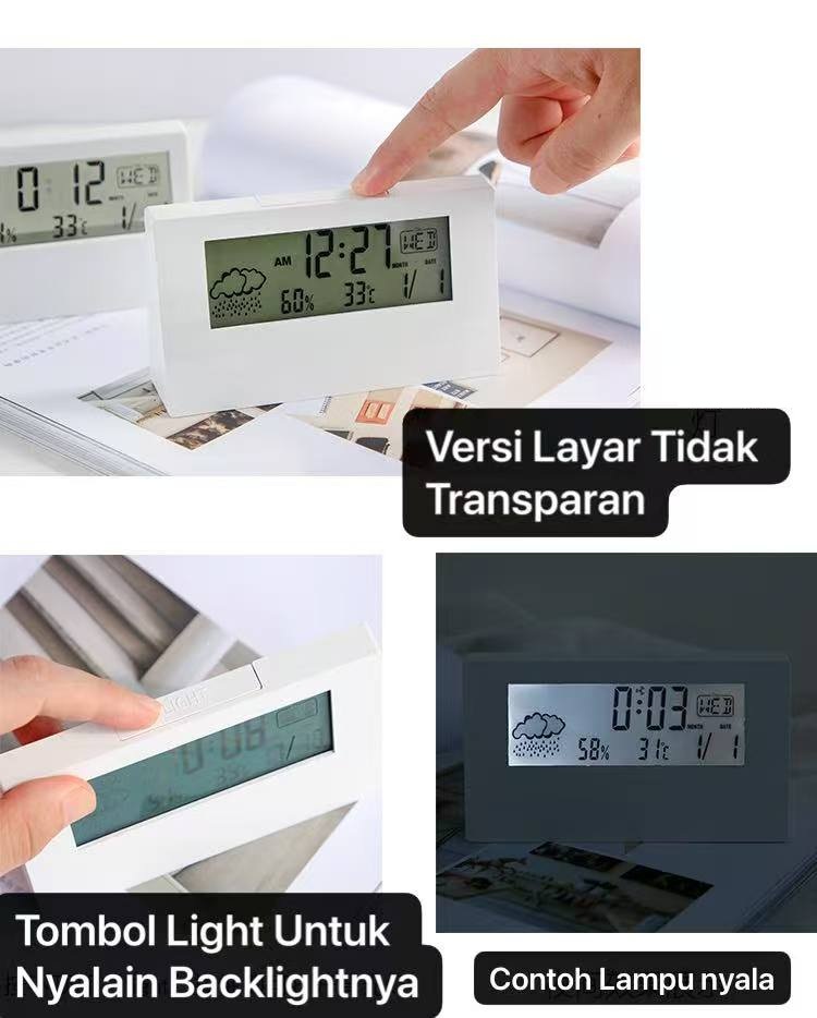 Jam Meja Dengan Design Layar Transparan Tampil Jam & Tanggal & Hari & Suhu & Humidity Sekaligus