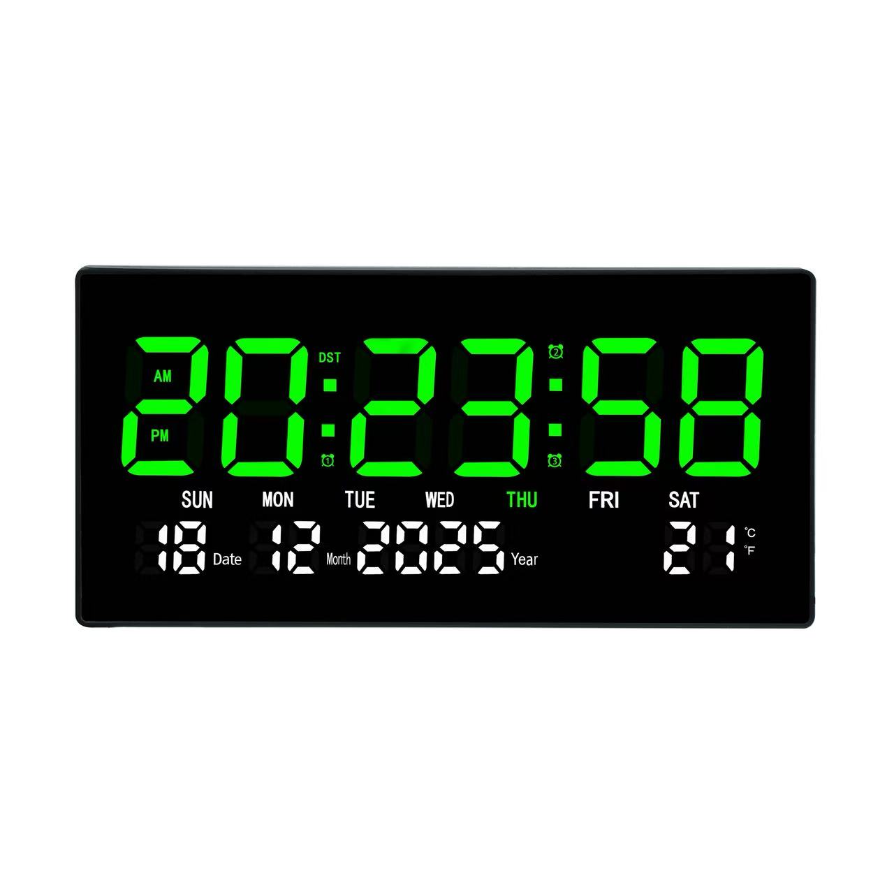 JD- 6823 LED Hijau Putih Jam Dinding Digital Layar Besar 47 x 23 cm LED CLOCK WALL Dinding / Meja Smart Watch Kalender & Alarm