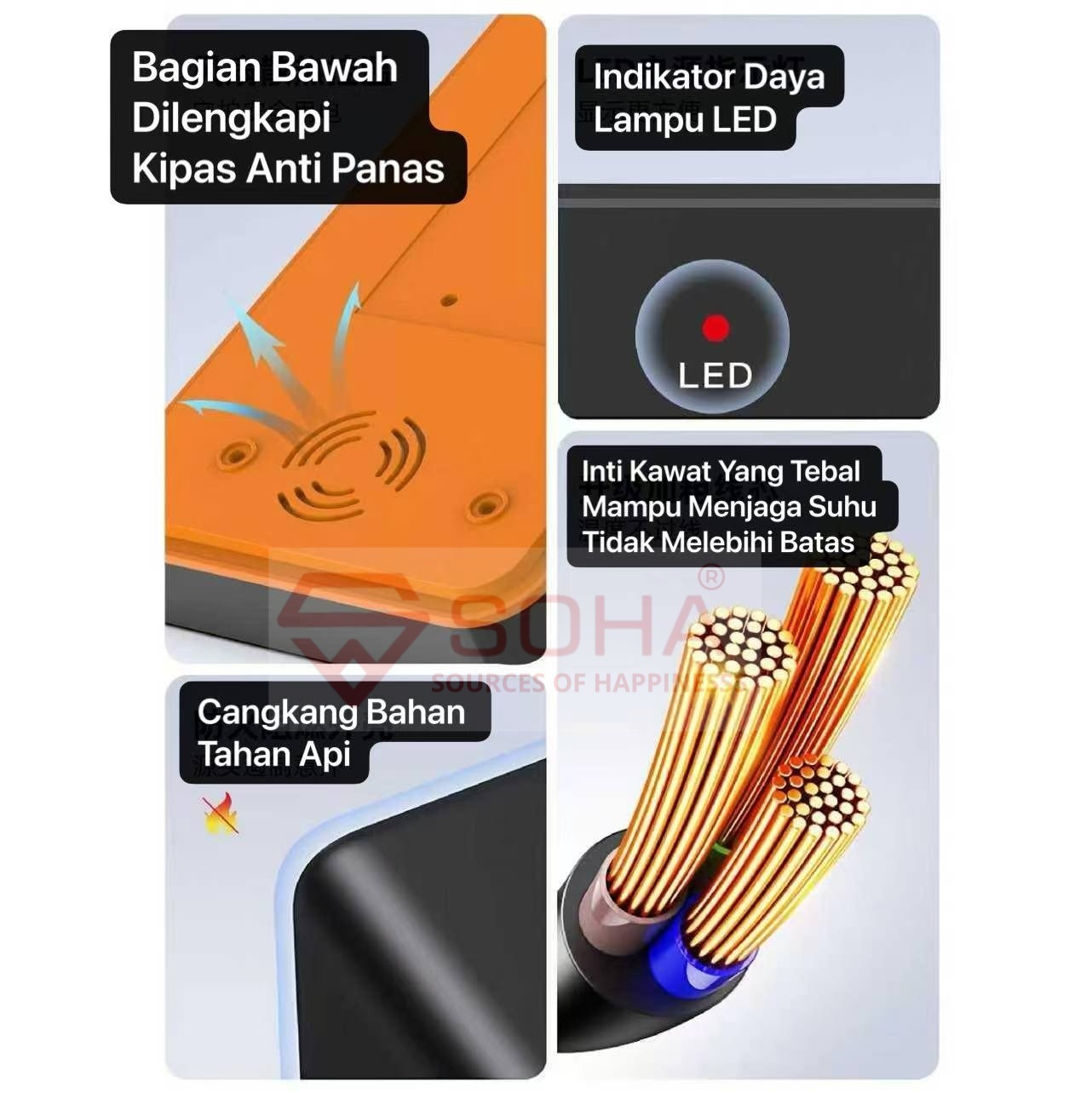 + Bahan Material : PC + ABS (Material mengurangi Resiko terbakar)