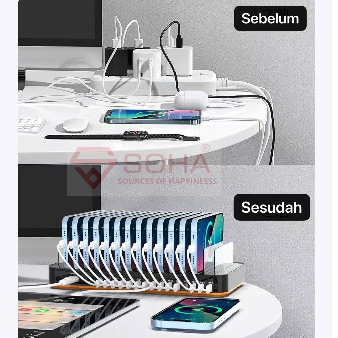 + Charger Station ini Dilengkapi Dengan 15 Sekatan Untuk Taruh HP Jadi Lebih Rapi dan Hemat Tempat