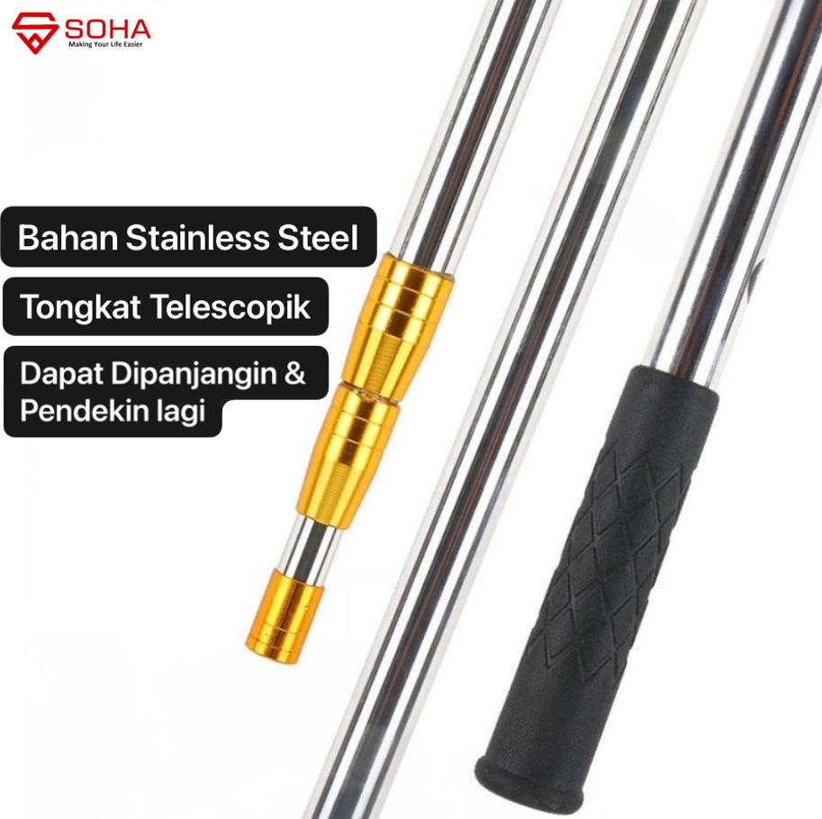 +. Bahan Stainless Steel Kuat Mengkilat Tahan Karat & Tahan Lama.Ujung Tongkat ini Bisa dipasang dengan :