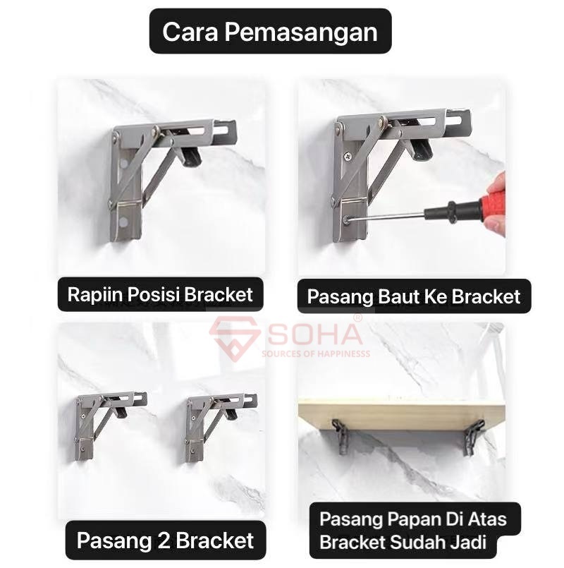 Bracket Siku Meja Lipat Dinding Stainless Steel ini adalah solusi praktis untuk membuat meja atau rak lipat yang kokoh, hemat tempat, dan terlihat rapi.